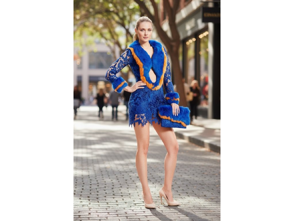 Tieto čipkované šaty s extravagantnou králičou kožušinou sú stvorené pre ženu, ktorá miluje pozornosť a nebojí sa ukázať svoj jedinečný štýl. Kombinácia jemnej čipky a výraznej kožušiny vytvára efekt, ktorý pritiahne pohľady v každej spoločnosti – od galavečera až po exkluzívnu párty.